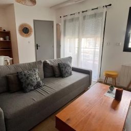 Plage à 800m, calme et bien isolé avec tout le confort nécessaire et un grand balcon desservant la pièce de vie ainsi que les deux chambres.