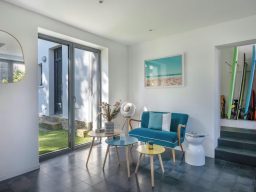 Décorée avec goût et hyper calme, elle dispose d'un jardin sans vis a vis, d'une table de ping pong, planches de surf et d'un barbecue entre autres
