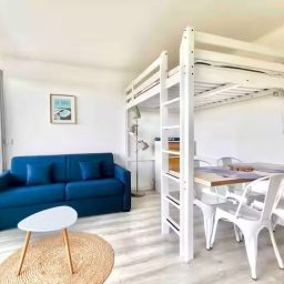 Décoré avec goût et au calme, le studio dispose d'un canapé lit très confortable ou d'un lit mezzanine, pour accueillir jusqu'à 2 adultes et 2 enfants